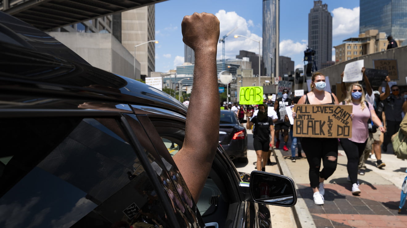 Anti-racism protesters on Saturday sought to name consideration to the deaths of two extra black males — one who was discovered hanging from a tree in California and one other who was fatally shot by police outdoors an Atlanta restaurant. The Atlanta police chief resigned hours later.