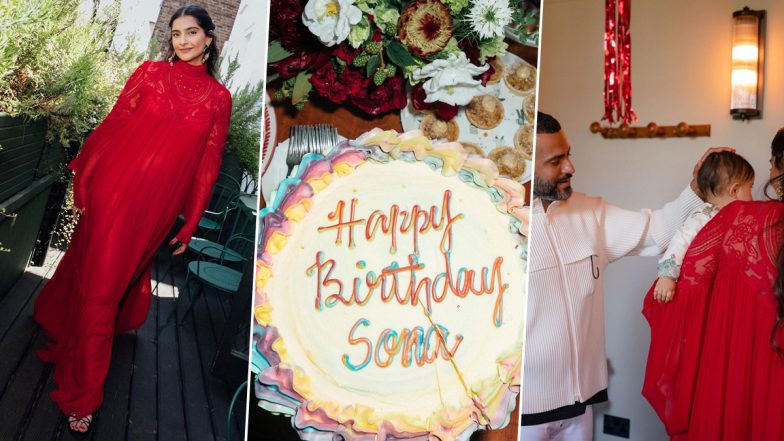 Actor Sonam Kapoor turned a yr older on Friday. Sonam shared glimpses from her celebration at her London dwelling. Sonam on Sunday, took to social media to share images from her celebration in a pink robe. Together with the images, the actor wrote, “My two stunning boys, mates, cake, champagne, oysters, caviar and the proper summer season day! What extra can a lady in a pink gown ask for her birthday? Thanks to everybody who wished me and to the universe for giving so bountifully. #everydayphenomenal #vayusparents #9thjune #gemini #birthdaygirl.” Sonam Kapoor Birthday: Anand Ahuja Calls Wifey ‘Angel on Earth’, Shares Adorable Photo of Her With Vayu.